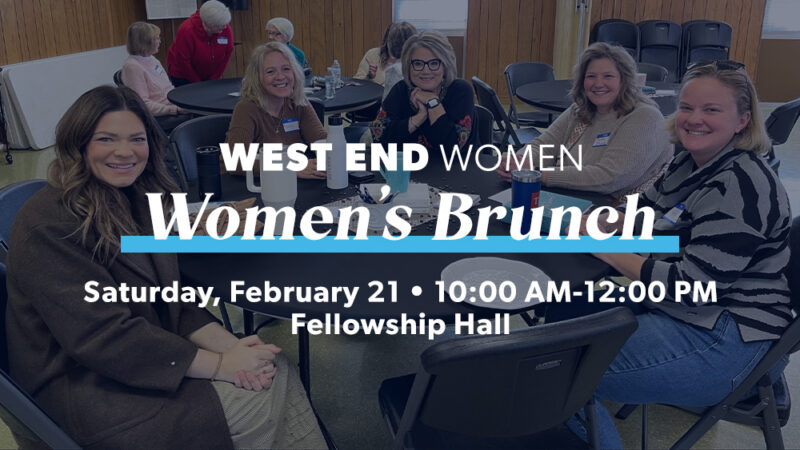 Slow down and savor time together at West End Women’s Brunch on Saturday, February 21, from 10:00 a.m.–12:00 p.m. in the Fellowship Hall. Enjoy meaningful fellowship with women of all ages, invite a friend to join you, and bring your favorite savory or sweet brunch dish to share.