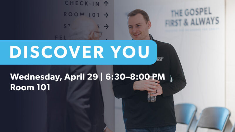 Join us for Discover You on Wednesday, April 29, from 6:30–8:00 p.m. in Room 101 as you explore how God has uniquely created and called you. This class is the second step in our membership process and will help you identify your gifts and find meaningful ways to serve.
